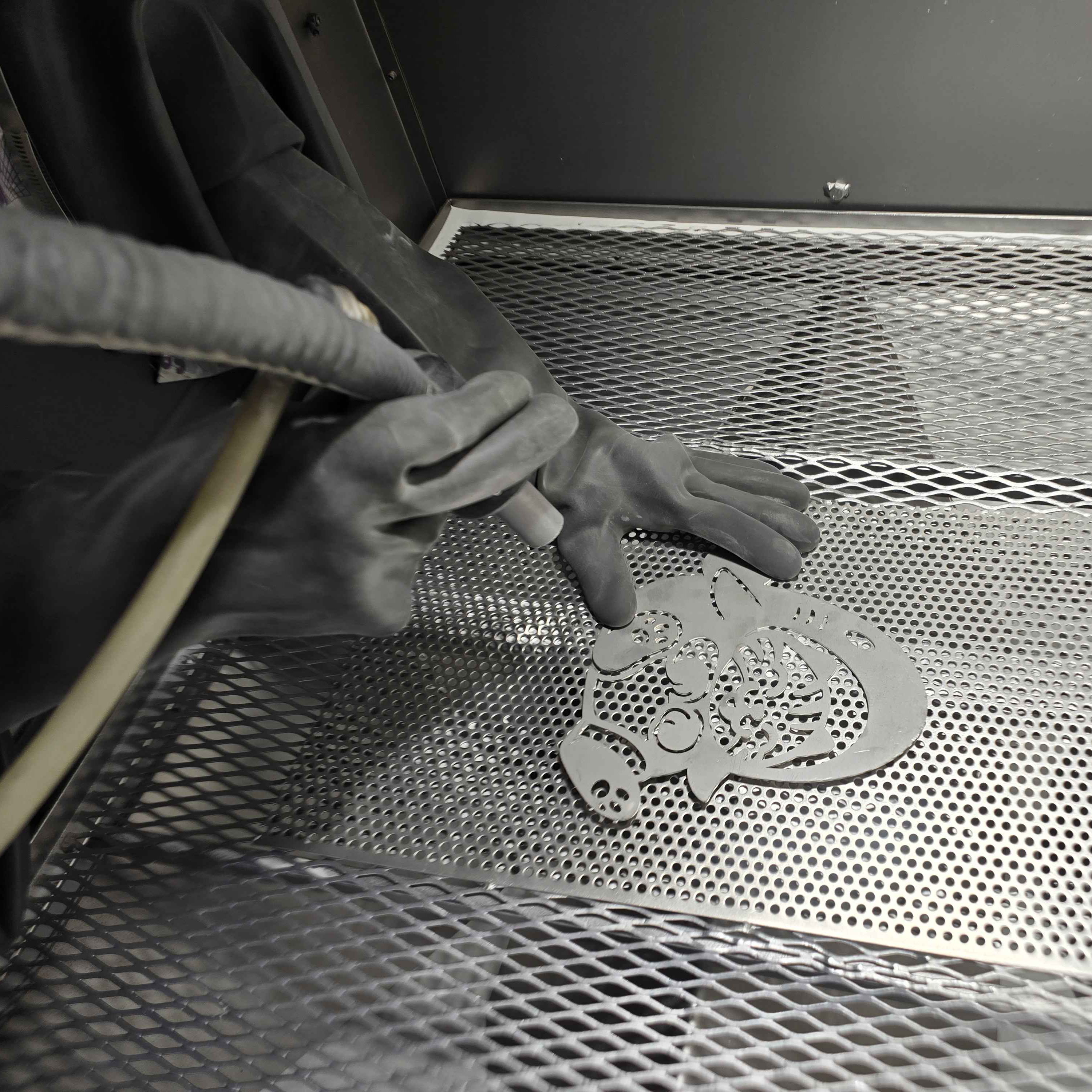 Inox découpé, finition peinture noire mate